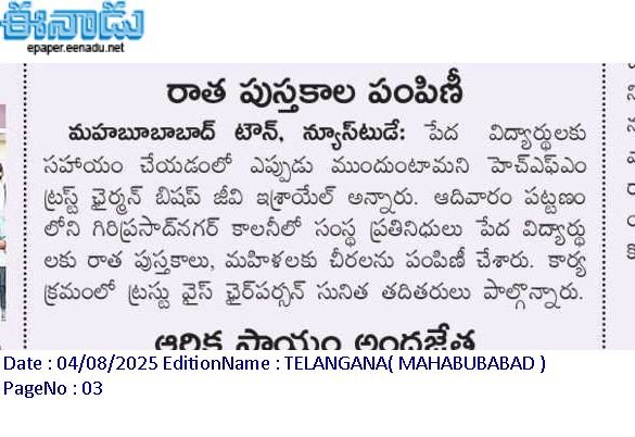 Our organization is led by a visionary leader, Sri. GUNDEPAKA VENKANNA ( ISRAEL), whose unwavering commitment to our cause has been the driving force behind our success. Established in 2024, since then the organization has been expanding continuously in terms of social and Educational Development and Medical services, Food, and Sheltering for Orphans. It has worked for the promotion of sustainable, equitable, and participatory development, social welfare, and s...